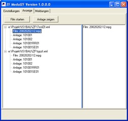 Das Modul startet mit der Einstellungsseite. Geben Sie hier den Pfad zu dem Verzeichnis an, in dem sich die ZF und die Filmdateien befinden. Es werden die Pfadmakros wie [PROJEKTBASIS] unterstützt. Zum Ändern des Pfades klicken Sie rechts neben der Pfadangabe auf den Knopf. Zum Laden der ZF Dateien klicken Sie auf “ZF Dateien laden”